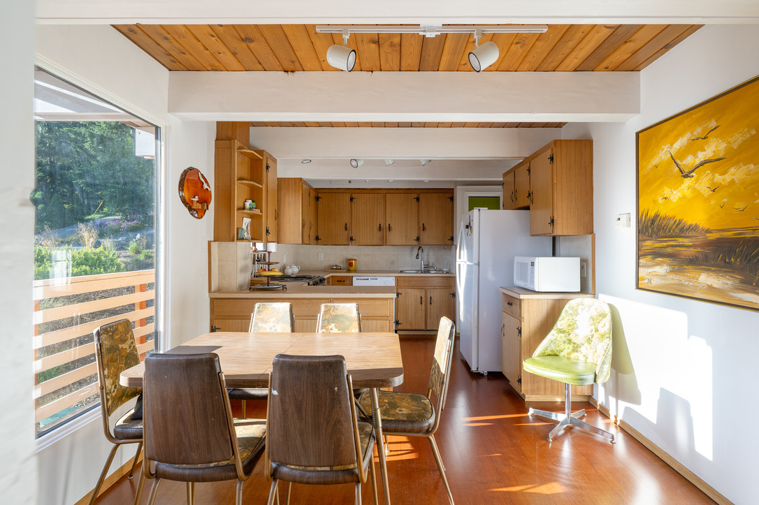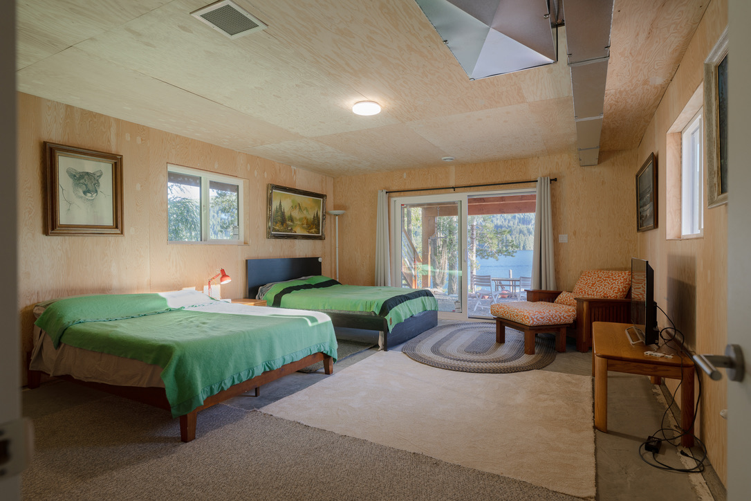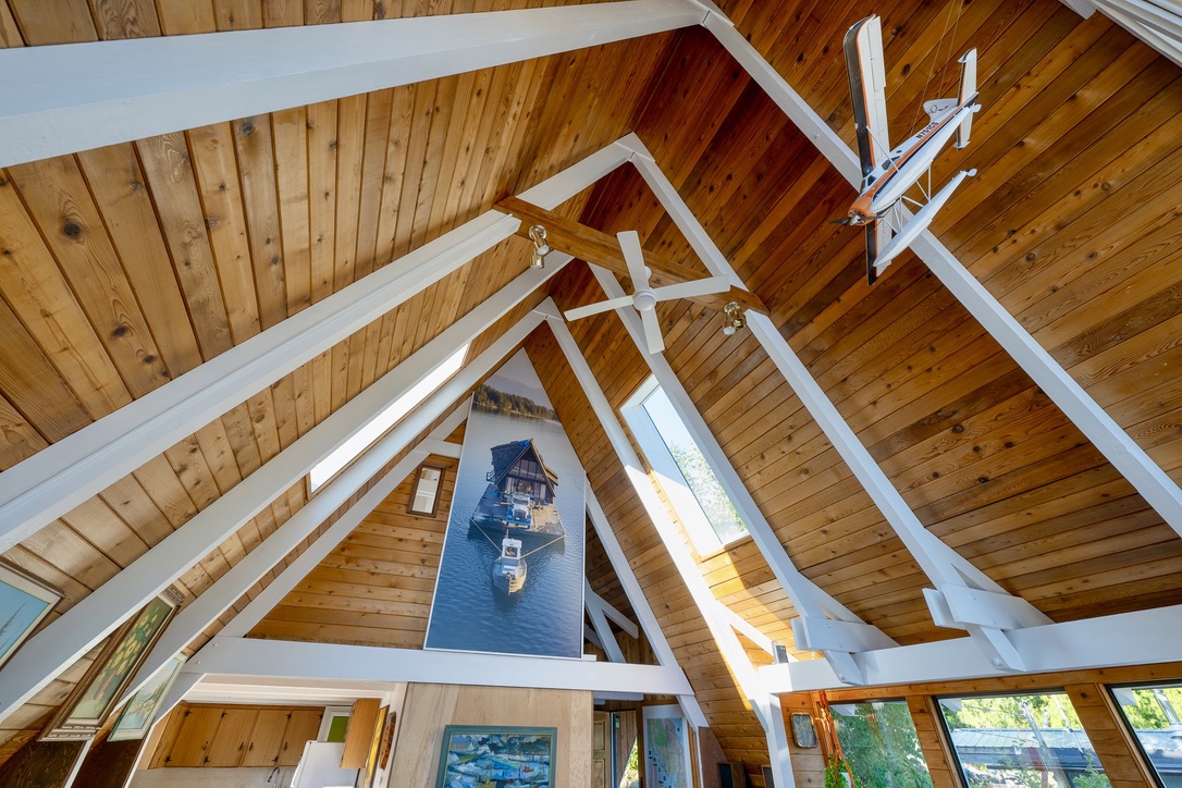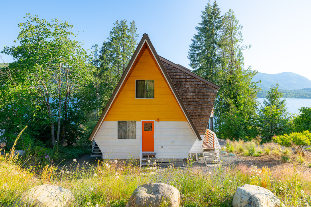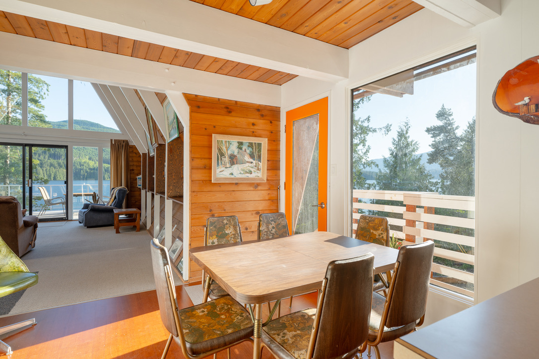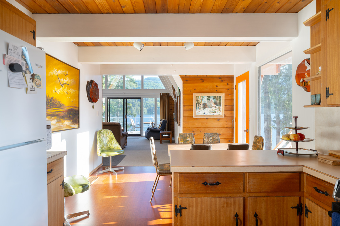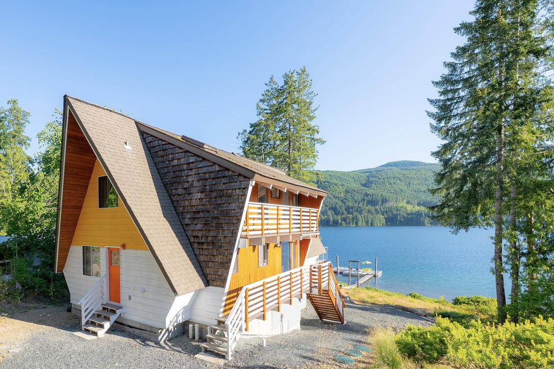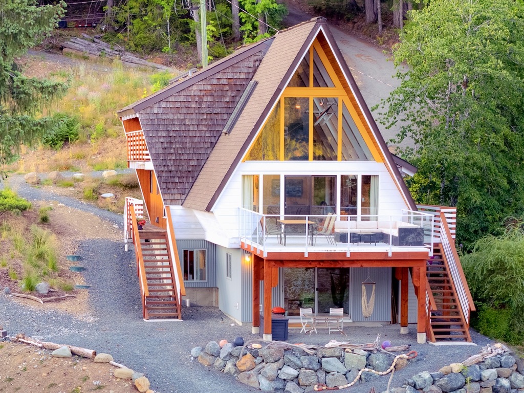 A timely phone call discovered a family on the same lake who wanted to recycle their 1968 A-frame cabin. What followed was six months of team planning, engineering logistics & the convincing of the local Building Department. Highly skilled contractors took four weeks to prepare two separate waterfront lots for the structural move. A modular floating barge and tugboat took 2 hours to complete the 4 nautical mile journey across Sproat Lake, BC without issue.