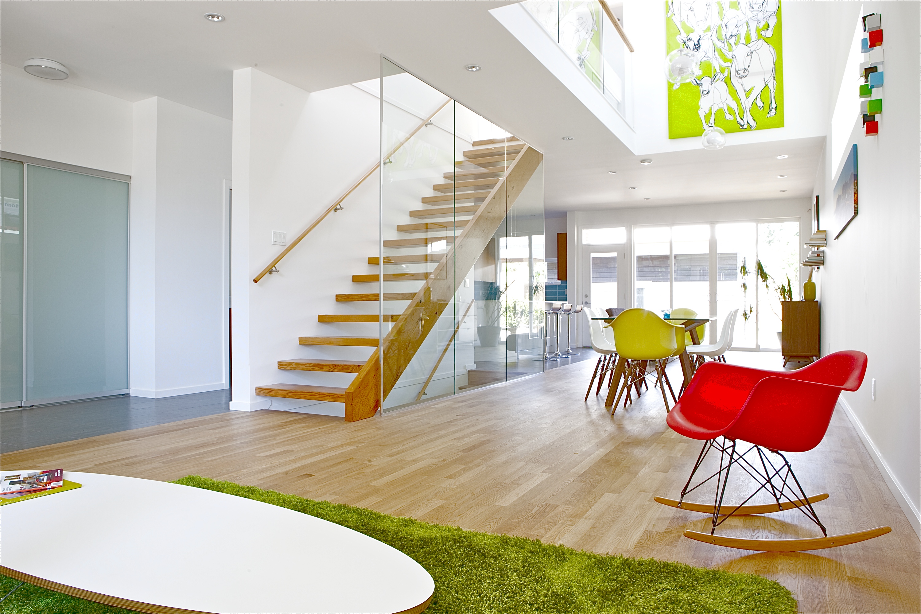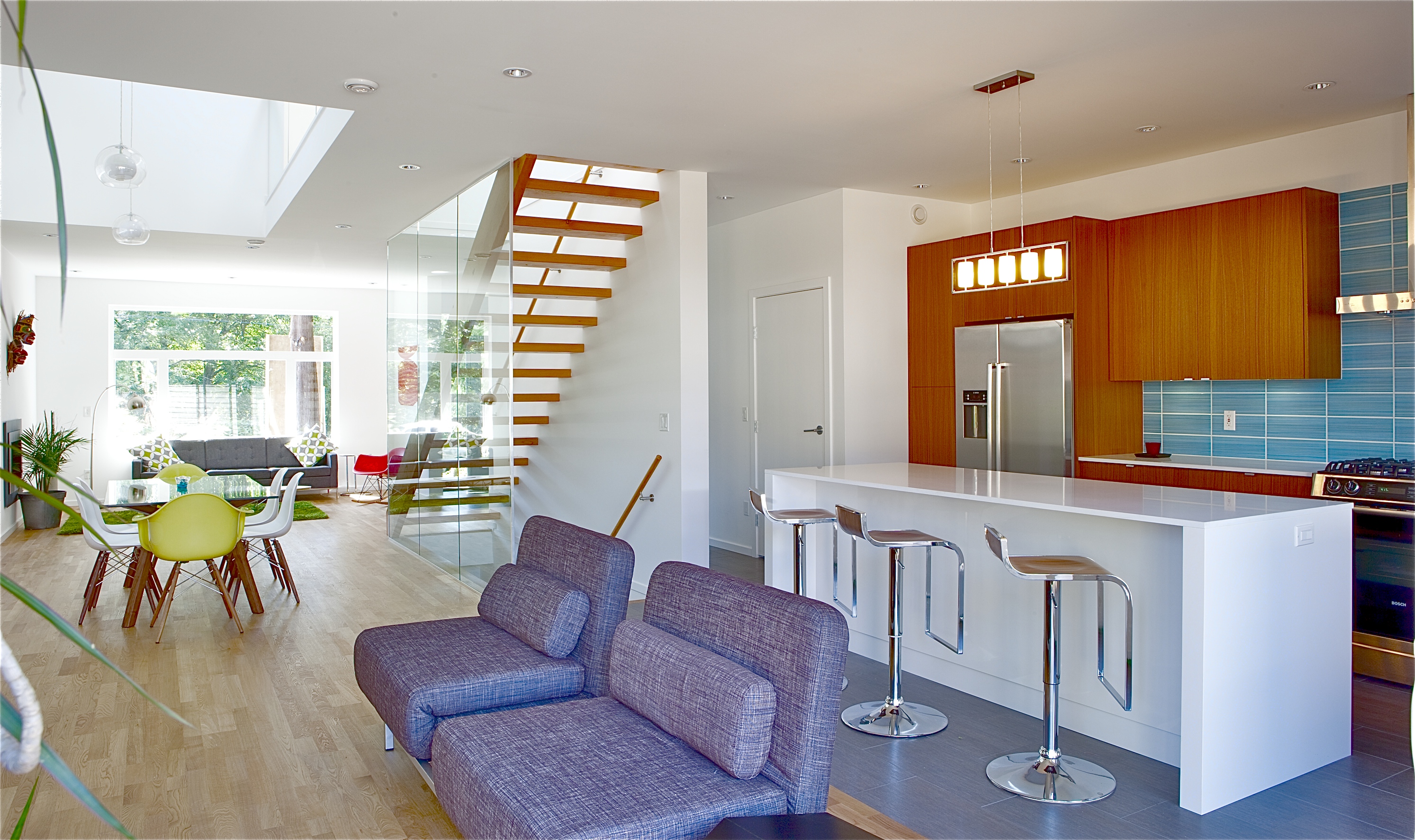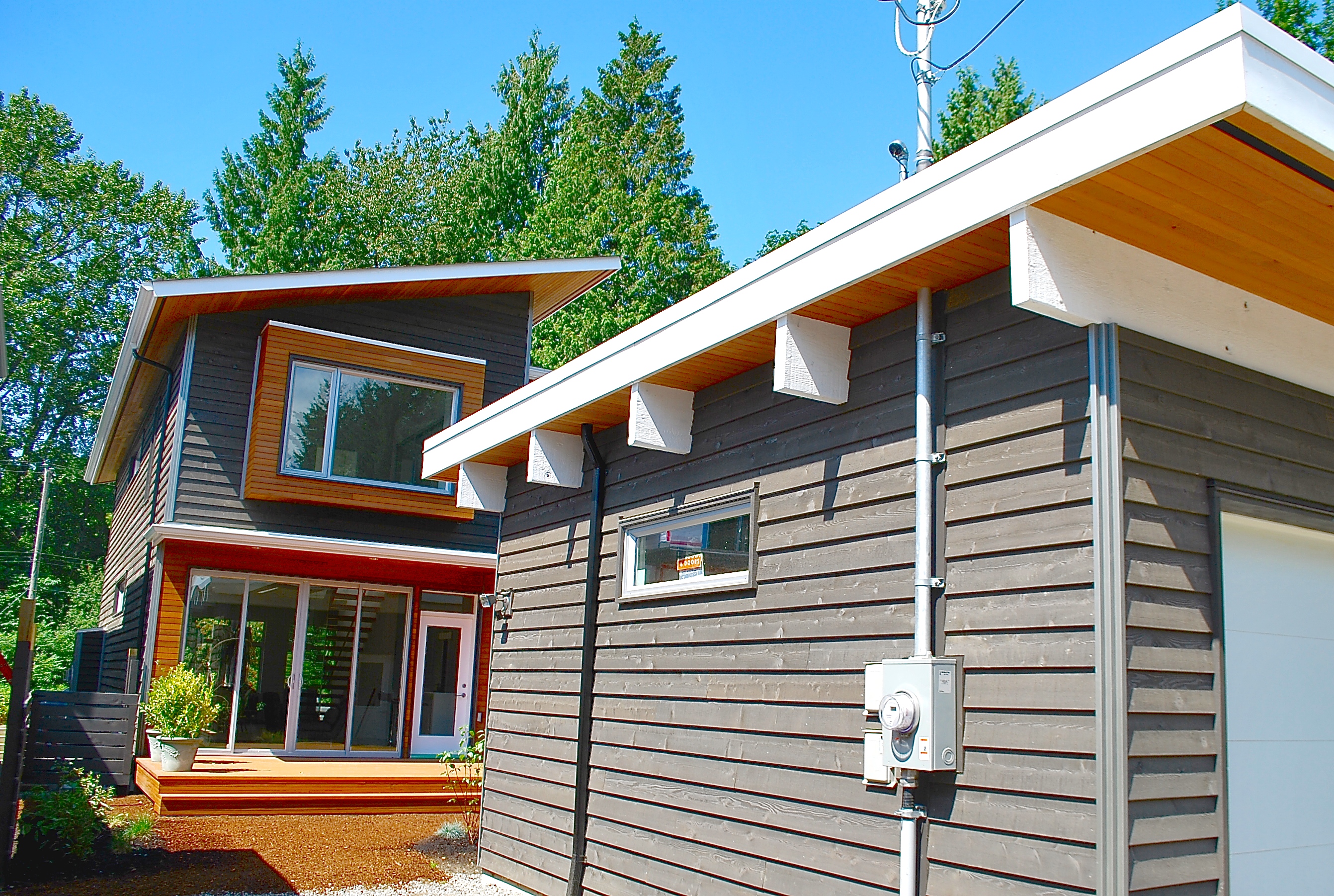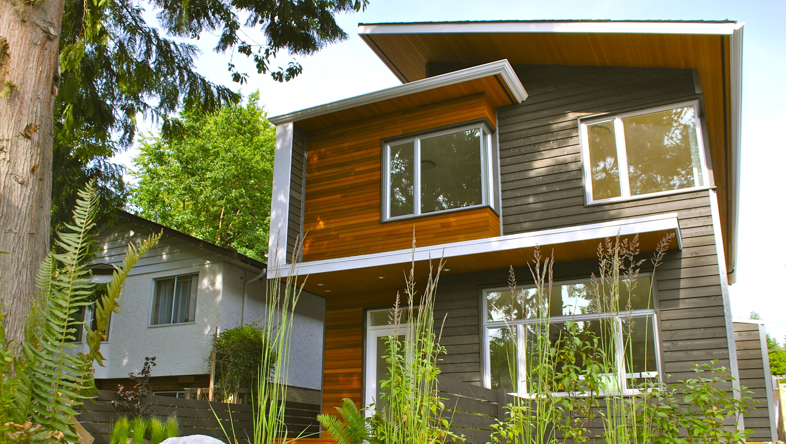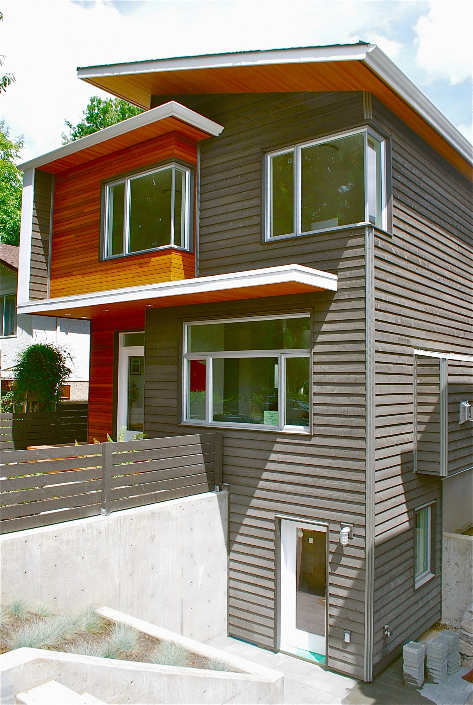 Typical Urban Infill project that was subdivided from the original 66’ wide lot into two 33’s. Unique in that the project was Certified as LEED for Homes Platinum level. It achieved the highest rated score in Canada to date, at a relatively low per square foot building cost. Design mandate was to compliment the existing “Vancouver Specials” on the street with a Modernist façade without drastically altering the fabric of the neighborhood. Key features are a high-performance building envelope with super insulated/air tight walls, use of natural light into living spaces, Rainwater Harvesting from the roof runoff, high efficient Heat pump/appliances/lighting, high content of Recycled Wood and a Heat Recovery Ventilator (HRV). All of these features combined defines this project as sustainable. Awarded best designed housing project by The City of North Vancouver and also in Vancouver, BC by Slowhomestudio.com out of 700 + floor plans submitted.